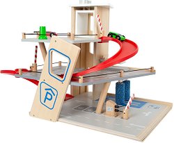 Пригответе се за вълнуващи забавления с паркинга на 4 нива от "Hape International". Той се състои от 3 отсечки, площадка за хеликоптер на най-горното ниво, бензиностанция на най-долното ниво, асансьор за автомобили и 3 превозни средства - хеликоптер и 2 автомобила. Комплектът е изработен от висококачествен дървен материал и е боядисан с безвредни бои на водна основа. Паркингът е с височина 48 cm. ... |