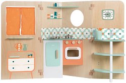 Детската къща от Classic World е прекрасен подарък за всяко дете, което обича да играе на семейство. Тя е изработена от дърво и представлява сгъваем параван с 2 прозореца кухня, пералня и хол. В кухнята ще откриете печка с котлони и фурна, хладилник, мивка, часовник и рафтчета. За да бъде играта още по-реалистична към къщичката са добавени и готварски прибори като тиган, тенджера с капак, чаша и 2 солници. Вратичките на фурната и хладилника се отварят и затварят, а с копчетата на печката детето ви ще може да регулира и градусите ѝ. От другата страна на паравана малчуганът ви ще може да се забавлява, докато играе с ... |