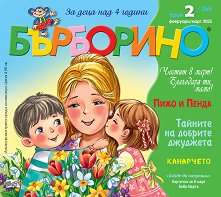 Списанието Бърборино на издателство Фют е предназначено за деца от 4 до 10-годишна възраст. То е незаменим помощник на педагозите в предучилищните заведения и 1. клас. Също така дава възможност за увлекателни съвместни занимания и пълноценно общуване на възрастните с децата в семейството. В списанието ще откриете: увлекателни четива; забавни развиващи игри и занимания; конкурси; модели за изрязване и сглобяване. Акценти в броя: Честит 8 март! Благодаря ти, мамо!; Пижо и Пенда; Тайните на добрите джуджета; Канарчето; Хайде да направим: Картичка за 8 март, Баба Марта. ... |
