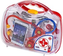 Лекарското куфарче с инструменти от "Klein" ще накара всяко дете да се почувства като истински лекар. С него, то ще може да лекува своите кукли и плюшени играчки. Комплектът е подходящ за деца над 3-годишна възраст и съдържа куфарче за съхранение, стетоскоп, телефон, рефлексно чукче, пинцети, памук в кутийка, отоскоп, термометър, спринцовка и регулируема лепенка. Термометърът и телефона разполагат с различни звукови и светлинни ефекти, които се активират посредством натискане на различни бутони. Телефонът и термометъра работят с по с 3 батерии LR41, които са включени в комплекта с демонстрационна цел и е ...