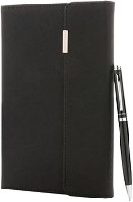 Комплектът от Swiss Peak е стилен и елегантен, идеален за подарък или лично ползване. Състои се от тефтер и химикалка. Тефтерът е с формат A5 и е подходящ за записване на вашите идеи, бележки и ежедневни записки. Тефтерът е с мека корица от изкуствена кожа с богата текстура и метално лого. Химикалката Swiss Peak се отличава с изчистена визия в цвят допълващ тефтера, класически дизайн и удобна форма. Комплектът е опакован в луксозна подаръчна кутия. Характеристики: формат: A5 размери: 14.0 / 18.0 / 2.1 cm листове: на редове брой страници: 160 брой листа: 80 цвят на хартията: кремав плътност на хартията: 80 g/ ... |