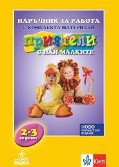 Наръчникът е към помагалото Приятели с най-малките, предназначено за деца на възраст 2 - 3 години. ... Наръчникът е насочен към педагозите и родителите с цел да улесни тяхната работа с предложените материали. Чрез него възрастните се ориентират в особеностите на образователно-възпитателната работа с най-малките деца съобразно възрастовите и психологическите им особености. Тук те ще намерят: схема на развитие на две-тригодишното дете; методически разработки по всички теми; указание за проследяване на резултатите от образователно-възпитателния процес; примерно тематично разпределение по образователни направления; ...