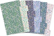 Разделителите от серията Meadow на Filofax се предлагат в 6 различни дизайна с формат A5. Благодарение на перфорацията, с която разполага всеки разделител лесно може да го добавите, местите или премахвате, за да подредите органайзера си изцяло по ваш вкус. Разделителните индекси са изработени от пластмаса с флорални мотиви в лавандулови, розови и зелени цветове, отпечатани от двете страни. Пластмасовите разделители са предназначени за използване с всички органайзери и клипбуци (clipbooks) от Filofax. Предлагат се в опаковка от 6 броя. Характеристики: формат: A5; размери: 14.8 x 21 cm; брой разделители: 6. ... |