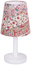 От френската компания "Trousselier" са изработили нощна лампа, която лесно ще се хареса на малките деца. Абажурът ѝ е декориран с красив десен на червени и розови цветенца. Нощната лампа "Червени цветя" е изработена от текстил, метал и устойчива на високи температури пластмаса. Разполага с прозрачен предпазител за крушката, така случайно попадналите там детски пръстчета няма да се изгорят. Самата лампа работи с напрежение от 12 V, а не директно с това от електрическата мрежа. Лампата се доставя разглобена, а сглобяването ѝ трябва да бъде извършено от възрастен човек, преди тя да бъде ...