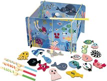 Изпробвайте уменията си на изкусен рибар и примамете водните обитатели с въдицата, така че сами да се закачат на нея. Поканете свои приятели и направете играта още по-забавна. Играта Риболов е подходяща за деца над 3-годишна възраст. С нея малчуганите ще тренират своята концентрация, ловкост и бързина. Комплектът се състои от игрално поле, цветно зарче, 10 фигурки на морски обитатели, 2 въдици и 2 цветни връзки за нанизване. Елементите са изработени от дърво, боядисано с безвредни бои на водна основа, а на краищата на въдиците има вградени магнити, с които да се ловят фигурките. Идеята на играта е участниците да хвърлят ... |