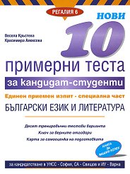 Второ преработено издание Десет тренировъчни тестови варианта Ключ за верните отговори Карта за самооценка и подхотовка ... Книгата съдържа 10 примерни теста по програмата за Единния приемен изпит (ЕПИ), специална част, български език и литература, който е въведен като форма на кандидатстудентски изпит от УНСС - София. Тестовите варианти включват по 40 задачи с избираем отговор. Към всеки тренировъчен тест има инструкции за работа, ключ за верните отговори и карта за самооценка. Предложените примерни тестови варианти дават възможност на кандидат--студентите да установят степента на своята подготвеност по изпитните ... |