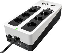 3S Gen2 550 DIN от Eaton e UPS разклонител, който осигурява захранване и защита от пренапрежение за настолни компютри, безжични мрежи, конзоли за игри и друго важно оборудване във дома или офиса. Той притежава компактен дизайн, който му позволява да бъде поставен навсякъде. А благодарение на внедрена система, може да бъде монтиран на стена. Разполага с 6 шуко изхода, като 3 от тях са само за пренапрежение, както и с USB вход (HID) за връзка с компютър. Пълна защита за: компютри, периферия и мултимедия ТВ, видео и Hi-Fi оборудване: домашно кино, NAS, цифрови декодери и други интернет шлюзове игрални конзоли ...
