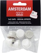 При рисуване със спрей често дюзите се запушват, затова е удобно да разполагаме с шепа резервни накрайници подръка, за смяна веднага или за различните цветове. Резервните дюзи от серията Amsterdam на Royal Talens са универсални и могат да се използват със всякакви спрей бои. Вместо да се заменят с нови, дюзите могат да се почистват и поддържат за редовна употреба с отпушващ спрей чистител. Комплектът съдържа по 2 дюзи от всеки вид, с отвори в сиво, синьо и розово, за лесно разпознаване. Така наборът допълва стандартните дюзи от 2.5 cm, с които пристигат акрилните спрейове Амстердам. Характеристики: сиви дюзи 1. ...