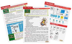 Комплектът включва 3 учебни табла по Безопасност на движението по пътищата за работа с ученици в 7. клас. Темите на таблата са: табло № 1: Мотопед; табло № 2: Пътни знаци за направления, посоки, обекти и други (група Ж); табло № 3: Скорост. Пътнотранспортно произшествие. Всяко табло е с размери 48 x 67.4 cm и има лайсни в горната и долната си част. ...