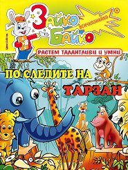 Растем талантливи и умни. Тема на броя: "По следите на Тарзан". ... Забавлявай се, докато научаваш любопитни факти, играеш весели игри и оцветяваш със Зайко Байко Всичкознайко! Във всеки брой от списанието ще откриеш интересни приказки, ще научаваш нови неща за природата и света, ще разрешаваш заплетени задачи и още много други. Темата в този брой е "По следите на Тарзан". За да оцветите тази книжка препоръчваме да използвате моливи или пастели, за да избегнете цветовете да се отбележат на другата страница. ...