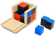 Биномният куб на Монтесори е подходящ за деца над 3-годишна възраст. Комплектът се състои от кутия за съхранение и редене, и 8 кубчета, които са изработени от дърво, боядисано с безвредни бои на водна основа. Задачата на детето ще бъде да разглоби куба и да се пита да го сглоби наново. На всяка стена на кутията е изобразено как правилно да се подредят кубчетата. Комплектът има за цел да развива детската координация и сила на ръчичките, докато го забавлява. Кубът е с размери 8.5 x 8.5 cm, а капакът му е с широчина 9.5 cm. За метода на Монтесори Революционен образователен метод - така би звучало най-краткото ...