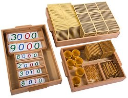 Научете малчуганите да броят с този невероятен комплект. Той е подходящ за деца над 4-годишна възраст. Може да се използва от педагози в предучилищна група на детската градина или за ученици в 1. клас, 2. клас, и 3. клас. Състои се от 100 мъниста, 45 нанизи с по 10 мъниста, 10 плочки с по 100 мъниста, куб с 1000 мъниста, 3 дървени подноса с различни размери, 9 дървени куба с различна големина, представляващи хилядни, 45 дървени плочки, представляващи стотици, 2 комплекта големи плочки с числа от 1 до 9000, 4 комплекта малки плочки с числа от 1 до 9000, 8 дървени кутийки без капак с различна големина и 6 пластмасови ...