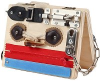 Играчката е подходяща за малчугани над 3-годишна възраст. Тя представлява дъска с множество дейности с образователна цел за малките любопитковци. Измежду тях детето ще се научи да затваря и отваря цип, да върти спинер, да закопчава и откопчава копчета, да заключва и отключва брави, и множество други. Дъската е изработена от дърво и може да се сгъва, а заниманията на нея са от метал, текстил и пластмаса. Разгънатата дъска е с размери 30 x 20 cm. За метода на Монтесори Революционен образователен метод - така би звучало най-краткото обяснения на подхода "Монтесори". Но какво точно обхваща определението & ...