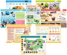Комплектът от 8 двустранни дидактични табла за фронтална работа включва: табло по български език и литература - Строеж на езика. Създаване на текстове; табло по математика Числа и действия с тях. Геометрични фигури, мерни единици; табло по човекът и обществото Културни забележителности. Природни богатства; табло по човекът и природата Хранителни вериги. Здравословен начин на живот; табло по човекът и природата Жизнени процеси. Органи на човешкото тяло; табло по изобразително изкуство Архитектура. Народно творчество; табло по музика Музикална писменост. Музикални инструменти; табло по компютърно моделиране ... |