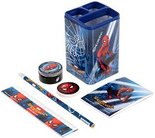 Ученическият комплект от "Derform" е чудесен подарък за всички фенове на "Спайдърмен". Той съдържа всичко необходимо за малкия ученик - молив, гумичка, острилка, линийка и тефтерче, а благодарение на металния моливник всички елементи ще бъдат подредени и на едно място. ...