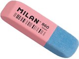 Комбинираната гума от "Milan" е изработена от синтетичен каучук със скосена форма. Тя е незаменим инструмент за чертане и писане. Розовата страна е гъвкава и подходяща за корекции от цветни и графитни моливи нанесени върху различни видове хартия. Синята страна е с абразивна повърхност, гарантираща пълно изтриване на различни видове мастила. Размери на гумата: 860 - 1.4 / 4.7 / 0.7 cm 840 - 1.9 / 5.2 / 0.8 cm ... |
