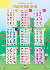 Учебното табло "Таблица за умножение" е ламинирано, с лайсни и въже за закачане. Таблото е с размери 70 x 100 cm. ... |