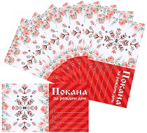 Комплектът се състои от 10 покани подходящи за рожден ден на момиче. На тях могат да се изпишат името на рожденика, за кого е поканата, датата, часът и мястото на събитието, както и телефонен номер за връзка. Всяка от поканите е с размери 11.5 x 7.5 cm. ...