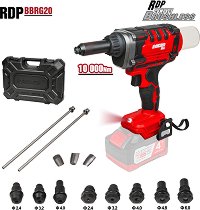 Акумулаторната нитачка на Raider от серията Pro е безчеткова и мощна, с максимална сила на занитване 10000 N, която осигурява бързо, надеждно и прецизно поставяне на нитове. Снабдена е с LED осветление за по-добра видимост на работната зона и автоматично прибиране на щифта след занитване. Разполага с контейнер за събиране на отрязани щифтове и лесна смяна на челата според размера на нитовете. Притежава здрава конструкция, гумирана и ергономична ръкохватка за удобен и сигурен захват, както и балансирано тегло за продължителна работа. Подходяща е за работа с алуминиеви, стоманени и неръждаеми нитове и е предназначена за ... |