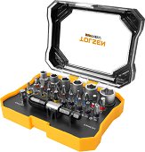 Комплектът на Tolsen е предназначен за завиване и развиване на болтове и винтове. Накрайниците са изработени от хром-ванадиева стомана, която осигурява висока издръжливост и здравина и имат захват 1/4" шестостен (HEX). Вид на накрайниците: битове 25 mm PH0 PH1 PH2 PH3 PZ0 PZ1 PZ2 PZ3 SL3 SL4 SL5 SL6 HEX2 HEX2.5 HEX3 HEX4 HEX5 HEX5.5 HEX6 TX10 TX15 TX20 TX25 TX27 TX30 TX40 вложки 1/4" ∅ 5 mm ∅ 6 mm ∅ 7 mm ∅ 8 mm ∅ 9 mm ∅ 10 mm ∅ 11 mm ∅ 12 mm ∅ 13 mm адаптор за битове 1/4" тресчотка 1/4" удължител ... |