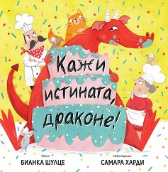 "Помощ! Къде да скрием тортата?"Ах, каква хубава торта! Нашият любим дракон е голям тортоядец и веднага ще я излапа! Докато сладкарите се мъчат да я скрият, децата, които четат тази книга, ще трябва да разсейват лакомника - да му говорят, да му попеят, дори да му потанцуват... Но огнедишащият хитрец успява да намери тортата, отхапва си голямо парче и обвинява котарака за наръфания сладкиш. О, не! Как е възможно! Дали драконът ще си признае, че е набедил своя приятел? Дали ще се разкае? В извинението му ще участват и децата. Помощта им е много важна,защото да се извиниш, не е лесна работа... Илюстратор: Самара ... |