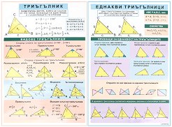 Учебното табло "Триъгълник. Еднакви триъгълници" е ламинирано, с лайсни и въже за закачане, с размери 77 x 98 cm. Таблото е едностранно и на него е събрана най-важната информация за триъгълниците. ...