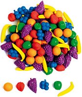 Комплектът представлява образователен ресурс, създаден с цел да подпомогне развитието на основни математически и когнитивни умения при децата в предучилищна и начална училищна възраст. Комплектът включва разнообразни цветни пластмасови фигури, оформени като различни видове плодове, които могат да се използват за преброяване, сортиране по форма, цвят, размер и вид, както и за създаване на модели и логически последователности. Фигурите са с удобен размер за малките детски ръце, в ярки цветове, които привличат вниманието на децата и стимулират интереса им към учебната дейност. Комплектът насърчава моторното развитие, ... |