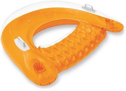 Отпуснете се в креслото от Intex и се насладете на лятото. Може да го използвате в открито море или в басейн. Креслото разполага с 2 ръкохватки и 2 поставки за напитки. Максималната му товароносимост е 100 kg. Насладете се на слънчевите летни дни и си осигурете максимално удобство. Размерите на креслото са 147 x 99 cm. За да надуете най-бързо и лесно този продукт, ви е необходима помпа. При спукване на продукта, може да го залепите с лепило или лепенка. ... |