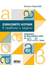 Помагалото е структурирано в съответствие с учебните програми по български език за 10. клас и 11. клас. За четирите езикови норми (правописна, граматична, пунктуационна, лексикална) в 13 теми са представени основните езикови правила. Подборът и подредбата им са съобразени с учебните програми по български език от 2. клас до 11. клас включително. Към правилата се предлагат задачи с насоченост предимно към: актуализиране и осмисляне на езиковите правила, изучавани във 2. клас - 8. клас; разпознаване на езикови явления, свързани с отделните правила; образуване и преобразуване на думи, форми, синтактични ... |