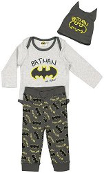 Бебешкият комплект от 3 части се състои от боди с дълъг ръкав, панталон и шапка. Той е изработен от материя със състав 60% памук и 40% полиестер. Бодито разполага с тик-так копчета между крачетата. И трите части от комплекта са с дизайн на Batman. ... |