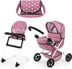 Количка за кукли с чанта и столче за хранене - Bayer Design - Количка за кукли с чанта и столче за хранене - Bayer Design