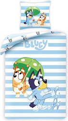 Спалният комплект е на тема Bluey, в която може да откриете още сходни детски продукти. ... С детския двулицев спален комплект без усилие ще превърнете леглото на вашето дете в комфортно и уютно място за сън и почивка. Комплектът се състои от калъфка за възглавница и плик за олекотена завивка. Изработен е от мека материя със състав 100% памук, която е нежна на допир до деликатната детска кожа. Детският спален комплект е опакован в PVC чанта, която е удобна за съхранение и го защитава от прах. Спалният комплект е подходящ за легла с размери на матрака 120 x 190 и 120 x 200 cm. Препоръки за пране: Може да се пере в ... |