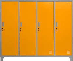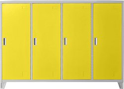 Металният четирикрилен гардероб Carmen е подходящ за оборудване на детски градини и училища. Разполага с рафтове с товароносимост 40 kg, както и лостове за закачалки, а краката с височина 10 cm улесняват почистването под него. Плътните врати се заключват с ключ и са снабдени и вентилационни отвори, които осигуряват ефективна циркулация на въздуха. Гардеробчето е изработено от праховобоядисан метал с грапаво-шагрен покритие. Важно: Гардеробът се доставя разглобен, в кашон, с инструкции за монтаж. ... |
