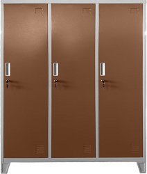 Металният трикрилен гардероб Carmen е подходящ за оборудване на детски градини и училища. Разполага с рафтове с товароносимост 40 kg, както и лостове за закачалки, а краката с височина 10 cm улесняват почистването под него. Плътните врати се заключват с ключ и са снабдени и вентилационни отвори, които осигуряват ефективна циркулация на въздуха. Гардеробчето е изработено от праховобоядисан метал с грапаво-шагрен покритие. Важно: Гардеробът се доставя разглобен, в кашон, с инструкции за монтаж. ... |