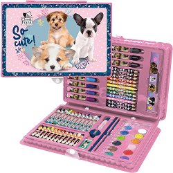 Комплектът от серията Cleo & Frank Company на Derform е чудесно решение да съберете всички любими пособия за рисуване в едно. Той съдържа различни материали за рисуване и лепене, подредени в пластмасово куфарче с тик-так копче, което ги предпазва от изпадане и разместване. Комплектът се състои от 71 части, подходящ е за училищни или развлекателни дейности и ще осигури часове творческо забавление за малки и големи. С него вашите деца ще имат безкрайни възможности за рисуване върху блокчета и скицници и оцветяване на книжки. Куфарчето е с приблизителни размери 31 / 21 / 4 cm и може лесно да се побере в ученическата ... |