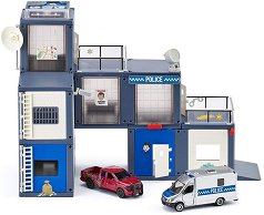 Готов ли си да имаш собствен полицейски участък, да преследваш престъпници и да съобщаваш за избягали затворници? Е от "Siku" са се погрижили тази детска мечта да стане реалност! Забавлявай се, докато сглобяваш сам елементите, а след това пусни в действие новия участък. Той се състои от три нива и си има всичко необходимо за по-реалистични игри. На първото ниво са разположени гаражите, стая за почивка, трезор, автомат за напитки и десерти. На второто ниво има кабинет с бюро, сейф с кюлчета злато, килия за престъпници и тераса. на последното трето ниво има кабинет, който води към тераса. На покрива на сградата е ... |