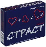 "Страст" - игра за пораснали ... Това е игра за любовни партньори, които позволяват на романтиката да експлодира в сексуални фантазии. Правила на играта: Подредете в четири отделни тестета всеки от видовете карти: "Романтика", "Чувственост", "Език на тялото", "Действие". Разбъркайте ги добре и ги поставете с лицето на долу, близо до таблото за игра. Всеки да си избере фигурка за игра и да я постави в началото на таблото за игра, върху първите стъпки. Един от играчите започва с хвърляне на зарчето и преместване на фигурката с толкова хода, колкото е хвърлил (движи се по ... |