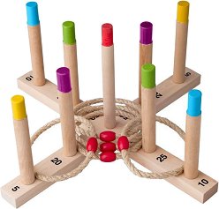 Играта с рингове "Hoopla" на "Woodyland" ще донесе много забавни мигове на вас и вашите деца. Комплектът се състои от кръстосана основа, 9 колчета с цветен край и 5 въжени ринга. Целта на играта е ринговете да се хвърлят и да се уцели някоя от пръчките. Всяка от тях носи различен брой точки. Съберете най-голям брой точки и победете останалите играчи. ... |