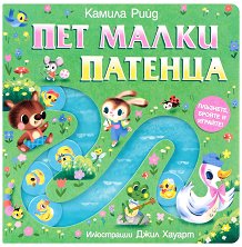 Плъзнете, бройте и играйте! Пет малки патенца плуват в реката след мама Патица, но... Очарователна интерактивна книга с пъстри илюстрации и весела игра. Докато се забавляват с немирните патенца, най-малките неусетно ще усвоят броенето до 5. Заниманията с книгата подпомагат и развитието на фината моторика на ръцете и зрително-двигателната координация. Подробните илюстрации дават възможност за тематични разговори по картинките и обогатяване на речта. В книжката има плъзгащи се картонени фигурки по улей на всяка страница. Илюстрации: Джил Хауарт. ...