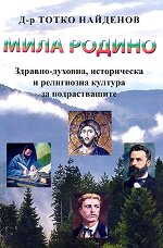 Здравно-духовна, историческа и религиозна култура за подрастващите. ... "Мили наши деца и внучета, С тази книжка ви предавам, съвсем накратко, най-важните факти от нашата история и най-хубавите стихотворения за нея и Отечеството ни, както и основните световни духовни водачи, за да имате родова памет, религиозни и основни здравни знания и навици. Обичайте семействата, майките, бащите си и Майка България!" Д-р Тотко Найденов ... |