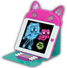 Играчката е част от серията Къщата за кукли на Габи, където ще откриете още игри, пъзели и образователни комплекти. ... Вашето дете ще се забавлява с дъската от Diamant. Тя може да свети в 8 сменящи се цветни ефекта. Малчуганът може да рисува любимите си герои от анимацията Къщата за кукли на Габи. В кутията са включени 3 изтриващи се маркера, бяла и черна подложка. Детето може да начертае различни илюстрации върху дъската и да ги оцвети. След това ще наблюдава как картината му светва в различни цветове. А за да може да рисува по-удобно, към комплекта е включена поставка. Тя има 3 степени на закачане. Докато рисуват ... |