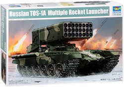 Умален модел на руска тежка огнеметна система "ТОС-1А", използван от Съветския съюз. ТОС-1 (от руски: тяжëлая огнемëтная система) е съветска 220-милиметрова, 30-дулова (OB.634 или ТОС-1М) или 24-дулова (OB.634B или ТОС-1А) гранатометна система и термобарично оръжие, монтирано на шасито на танк Т-72. ТОС-1 е предназначена за унищожаване на живата сила на врага в укрепления, както и по-леко бронирани превозни средства. Първите бойни тестове са проведени през 1988 - 1989 година в долината Панджшир по време на съветската война в Афганистан. Системата е показана за първи път пред публика през 1999 година в ...
