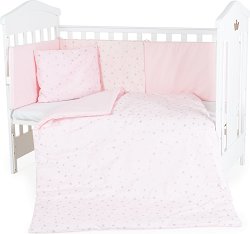 С бебешкия спален комплект Nook на Hugzzz без усилие ще превърнете креватчето на вашето бебе в уютно място за сън и игри. Комплектът се състои от възглавница, калъфка за възглавница, олекотена завивка, плик за олекотена завивка с цип, долен чаршаф с ластик и двулицев обиколник. Той е изработен от мека и приятна на допир материя със състав 100% памучен ранфорс. Обиколникът е със свалящ се калъф с цип и е лесен за закрепване към предпазните решетки на детското креватче, за да обгърне част от вътрешността на леглото и да предпази бебето ви от евентуален удар в решетките. ... |