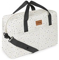 Чантата е част от серията Family, в която ще откриете още бебешки и детски продукти по темата. ... Чантата за бебешка количка от Petit Praia е практичен и удобен аксесоар, който може да съхранява както вашите, така и бебешките принадлежности по време на ежедневните разходки навън. Тя е изработена от водоустойчива материя със състав 100% полиестер, която няма да позволи на вещите ви да се намокрят през дъждовното време. Чантата разполага с 2 къси дръжки и 1 регулируема презрамка, която ви позволява да я носите през рамо или да я закачите за количката. Дългата дръжка е снабдена със закопчалки, които ще ви помогнат да ... |