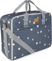 Чантата е част от серията Family, в която ще откриете още бебешки и детски продукти по темата. ... Чантата за път от Petit Praia е практичен и удобен аксесоар, който може да съхранява както вашите, така и бебешките принадлежности по време на ежедневните разходки навън. Тя е изработена от водоустойчива материя със състав 100% полиестер, която няма да позволи на вещите ви да се намокрят през дъждовното време. Чантата разполага с 2 къси дръжки и 1 регулируема презрамка, която ви позволява да носите чантата през рамо или да я закачите за количката. Тя е снабдена и с ластици във вътрешната част, които ще закрепят дрехите на ... |