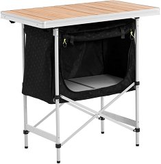 Сгъваем кухненски къмпинг шкаф на "Outwell" е лек, компактен и изключително функционален. Подходящ е за ползване по време на дълго къмпингуване, риболов или за излети със семейството. Сглобяването става бързо и лесно без необходимост от инструменти. Направен е от здрава алуминиева конструкция и бамбукова повърхност на масата. Бамбуковият плот е удобен за подреждане на съдове, продукти или за ползване като работен плот. Шкафът разполага с вратичка, която се затваря с цип. В отворен вид вратата осигурява отличен достъп до вътрешността на шкафа. Характеристики: конструкция - алуминий бамбуков плот изцяло ...