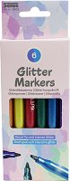 Флумастерите от Sense се предлагат в комплект от 6 блестящи цвята - жълт, оранжев, червен, лилав, син и зелен. Те разполагат с устойчиви, блокирани накрайници, които не могат да бъдат извадени от малки деца и вентилирана капачка. Флумастерите са лесни за нанасяне, разполагат със конусовиден връх, даващ възможност както за детайлно рисуване, така и за покриване на големи повърхности. Блестящите флумастери са подходящи за рисуване върху бяла и цветна хартия, както и върху картон. Могат да се използват за рисуване и оцветяване на блокчета и книжки. Също така са подходящи за декориране и надписване на ръчно ... |