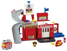 Малкият човек ще се впусне в смели приключения с пожарната станция от Vtech. Комплектът включва спирална писта, пожарна кола и станция. Най-отгоре на станцията е поставен звънец. При позвъняване пожарната кола се спуска по пистата. Чрез лоста, разположен отстрани на сградата, може да се променя маршрута на колата. Той премества пистата. Постройката разполага с рампа, която повдига колата нагоре. Превозното средство може да минава през врата, която се движи напред и назад. Станцията включва аксесоари като въртящ се флаг, пожарогасител и пламък. Пожарната кола издава над 50 звукови ефекта като песни и мелодии. Мелодиите ... |
