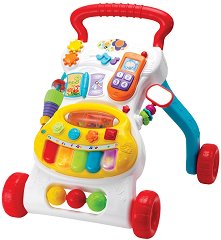 В етапа на прохождане мъничето може да използва проходилката като играчка за бутане, с която постепенно да се научи да пази равновесие, да придобие увереност и така да започне да прави първите си самостоятелни стъпки с лекота. Заедно с това, проходилка тип уокър ще бъде и много занимателна за детето. Тя ще му предложи няколко активности, сред които: светлинни и звукови ефекти, пиано и телефон, които могат да се свалят от количката и да се играе с тях самостоятелно, звукови механизми - книжка, ноти, дрънкалки, зъбни колела и огледалце. Колелата на количката от "WinFun" са стабилни и се задвижват лесно, а ... |