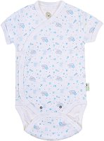 Бебешкото боди с къс ръкав на "BioBaby" е изработено от мека и приятна на допир материя със състав 100% био (органичен) памук. За по-удобно обличане и събличане бодито е с прихлупваща се предна част, тип прегърни ме, която се закопчава с 2 тик-так копчета. То разполага и с тик-так копчета между крачетата, чрез които лесно може да коригирате размерът му. А наборът в задната част, осигурява допълнително пространство за памперса и оптимален комфорт при движение на бебето. Тик-так копчетата YKK са без съдържание на никел. Бодито се предлага в 5 размера според ръста на бебето: ръст 50 cm - 0+ месец ръст 56 cm - ...